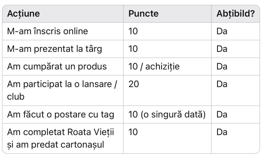 • 80+ puncte → cursuri premium, sesiuni 1:1, pachete cadou digitale